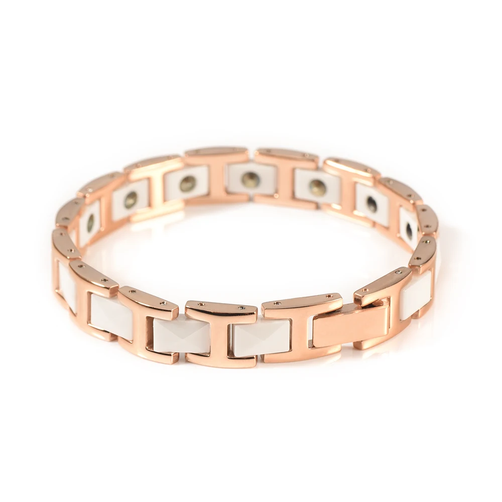 Related Product for Wollet Jewelry 99.999% Germanium Hematite Magnetic White Ceramic Bracelet for Women Rose Gold Color