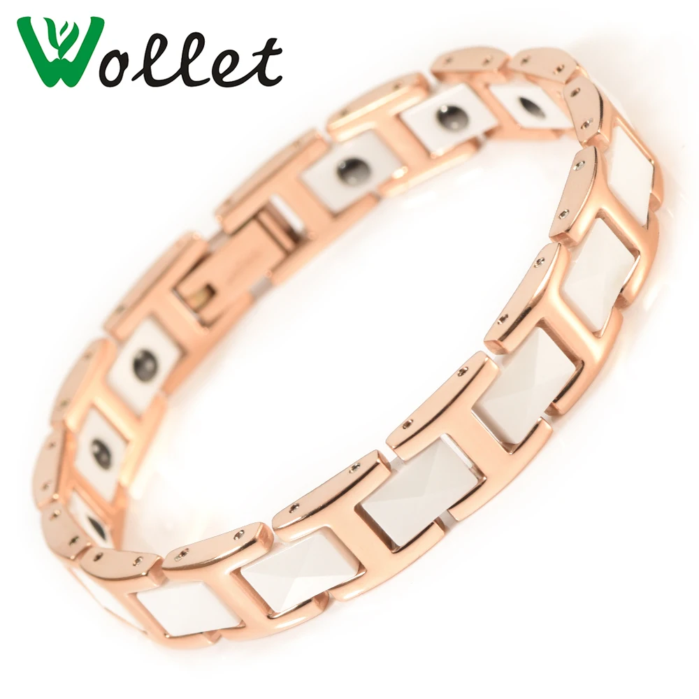 Special Chance of Wollet Jewelry 99.999% Germanium Hematite Magnetic White Ceramic Bracelet for Women Rose Gold Color