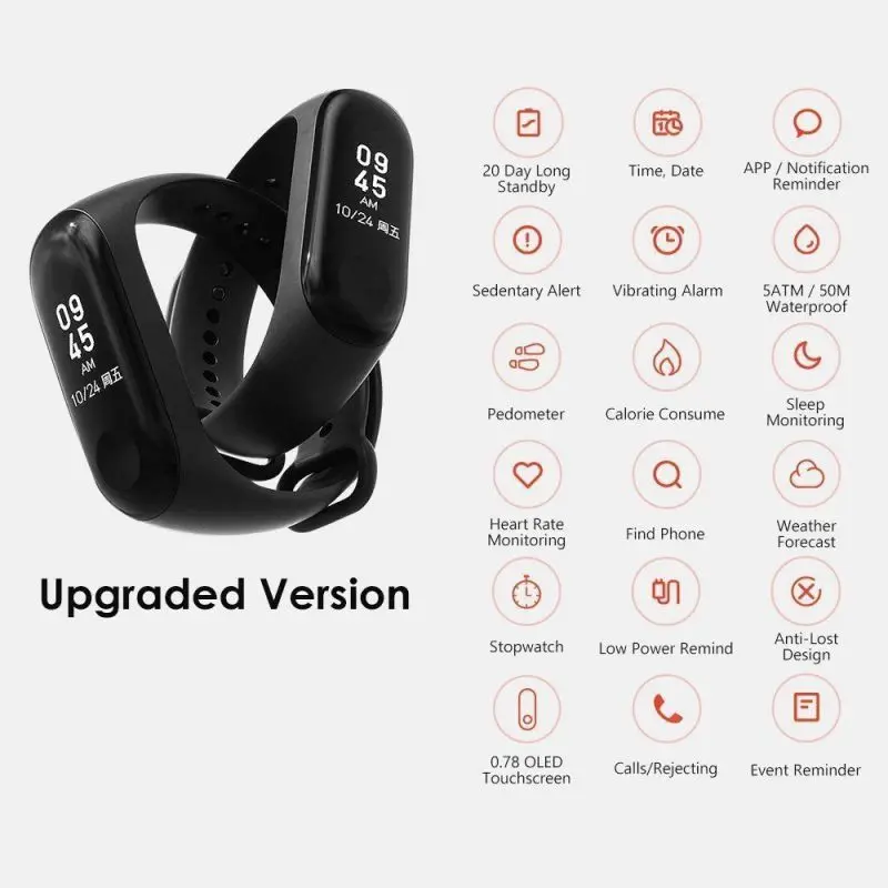Related Product for M3 Smart Bracelet OLED Color Screen Blood Pressure/Heart Rate Monitor Smart Bracelet Watch Pedomete